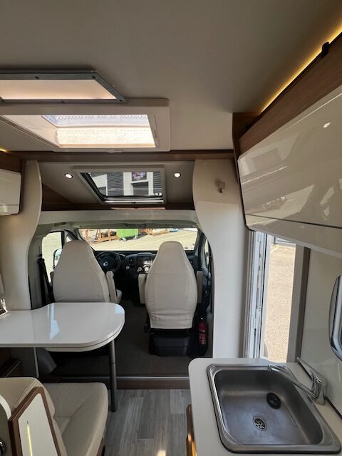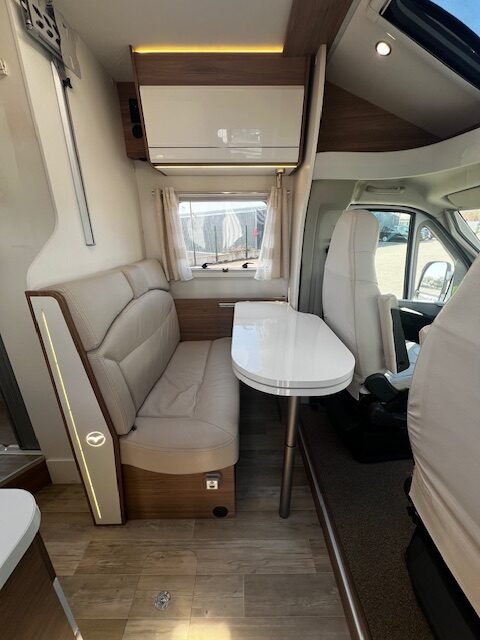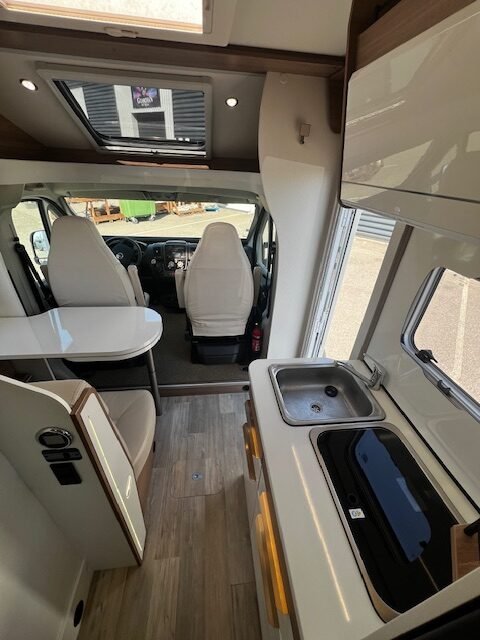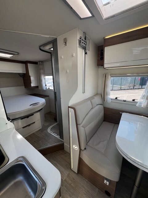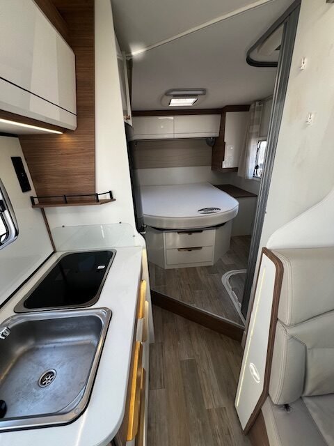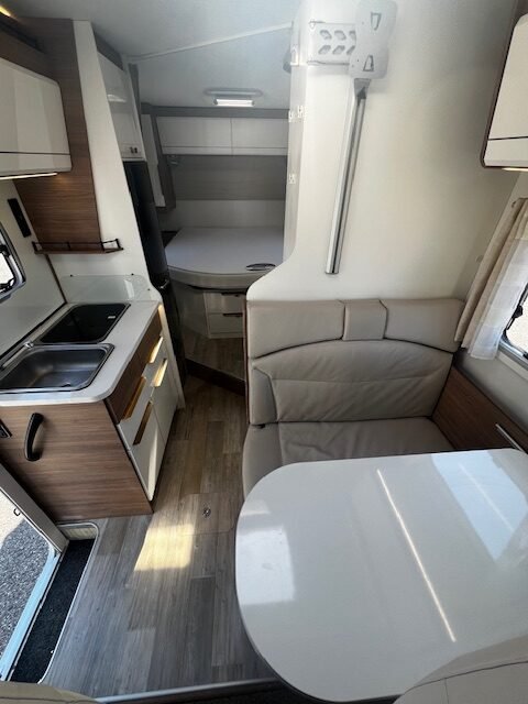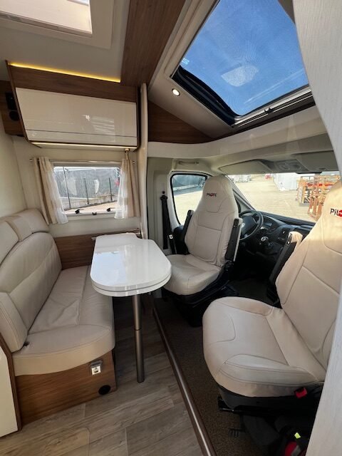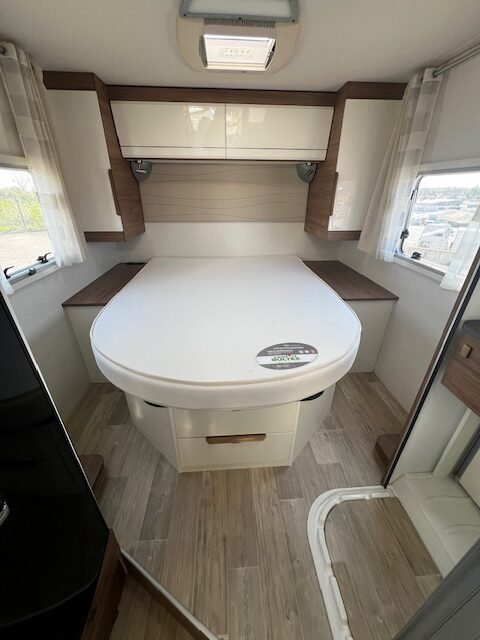 Zeer mooie Pilote halfintegraal met queensbed en lage kmstand.